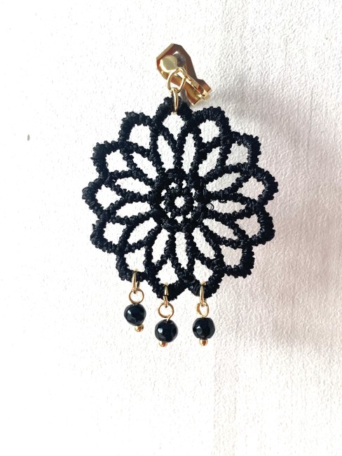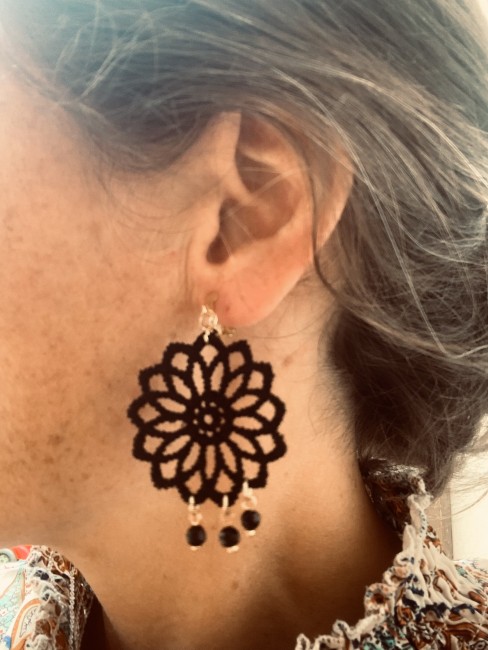 Offrez-vous une paire de boucles d'oreille unique avec ce bijou en dentelle noire orné de ses perles naturelles.