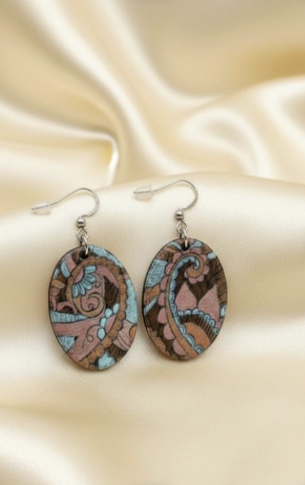 Chaque perle est unique car sa coloration dépend également d'un procédé chimique pour la fixation des pigements dans le bijou. À l'atelier, nous assemblons des perles quasiment identique pour former une paire de boucle d'oreille de caractère.